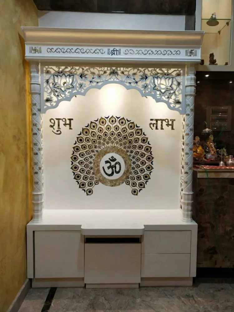 Sai Plywood company provides a large number of temple collection, Which include designer mandir, Jail cutting design, Corian backlit panel using Colour resin inlay & MOP Work in Corian with Indian traditional design. View multiple Corian temple design on our website and select custom mandir design for your home. we offered our Corian mandir are durable easy to maintain. Corian Sheet is maximum using in Corian wall cladding and Corian backlight design. Corian Temple Design Customised to Suit your Needs. Book a free design consultation today…